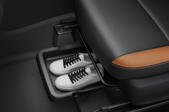 載せる荷物に応じて荷室床面の高さを2段階に調節できます。6:4で左右分割することもできるので、背の高さの違う荷物を運ぶときに便利です。4:2:4分割可倒式リヤシートと組み合わせることで、多彩なデッキアレンジが可能になります。