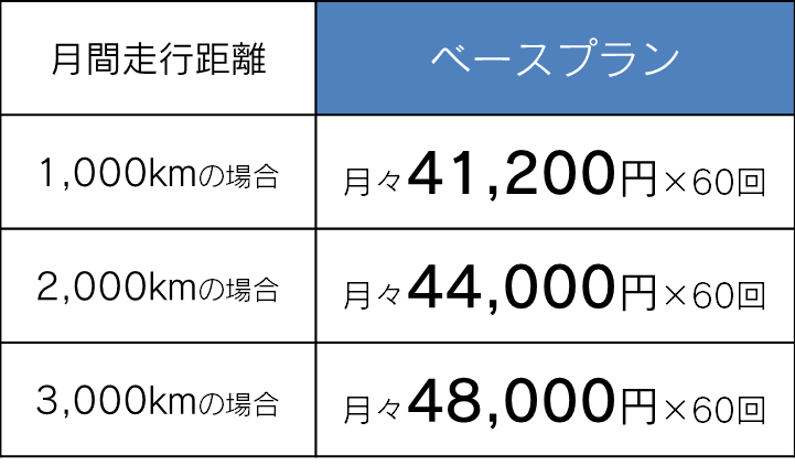 お客様の過去の走行実績・今後の使用形態により、基本走行距離を設定し、基本走行距離を越えた場合は、別途費用が発生する場合があります。