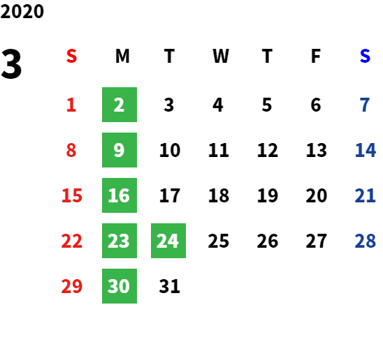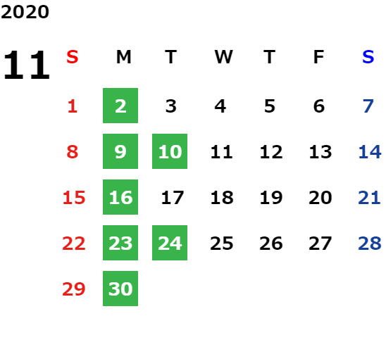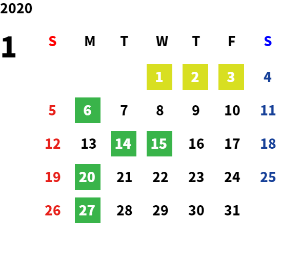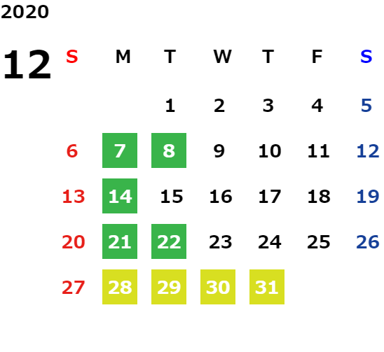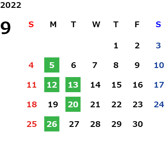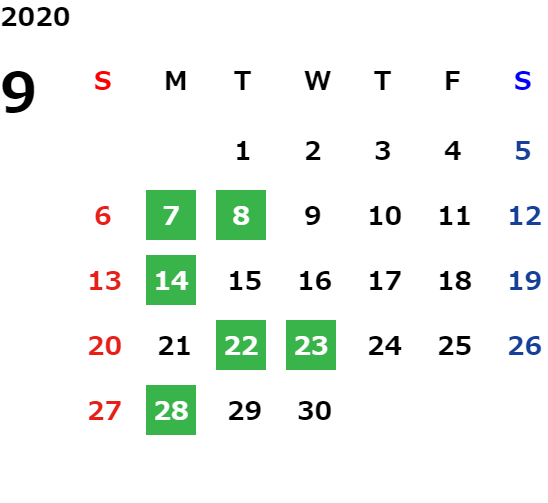 営業日カレンダー